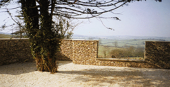 A geometric planting of 60 fruit and nut trees, blossom in a sequence. The orchard contains the formal games of tennis and parking and a painting studio. A living willow structure makes a room with shelter and shade. In the ground, hidden, is an ancient well, a hermit's source. A stream, run-off from the fields, is cleaned of nitrates by reed beds, and fills a pool. A thousand tree wood, in a species mix taken from fragments of nearby ancient woodland, shelters the buildings from the strong winds that are funneled by the valley. Hedges, planted to make sheltered play spaces, and walls make calm spaces framing a meandering landscape.